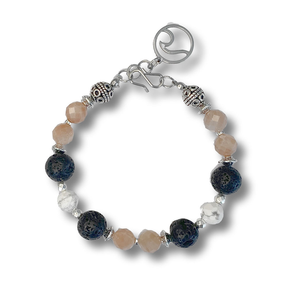 B159. Hematite, Howlite, Lava Rock, and Peach Moonstone Bracelet
